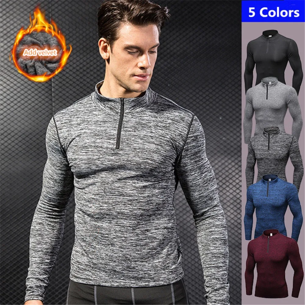 Yuerlian Sports Tshirt Men Add Velvet Fitness Running Tshirt Training Exercise Long Sleeve Stretch