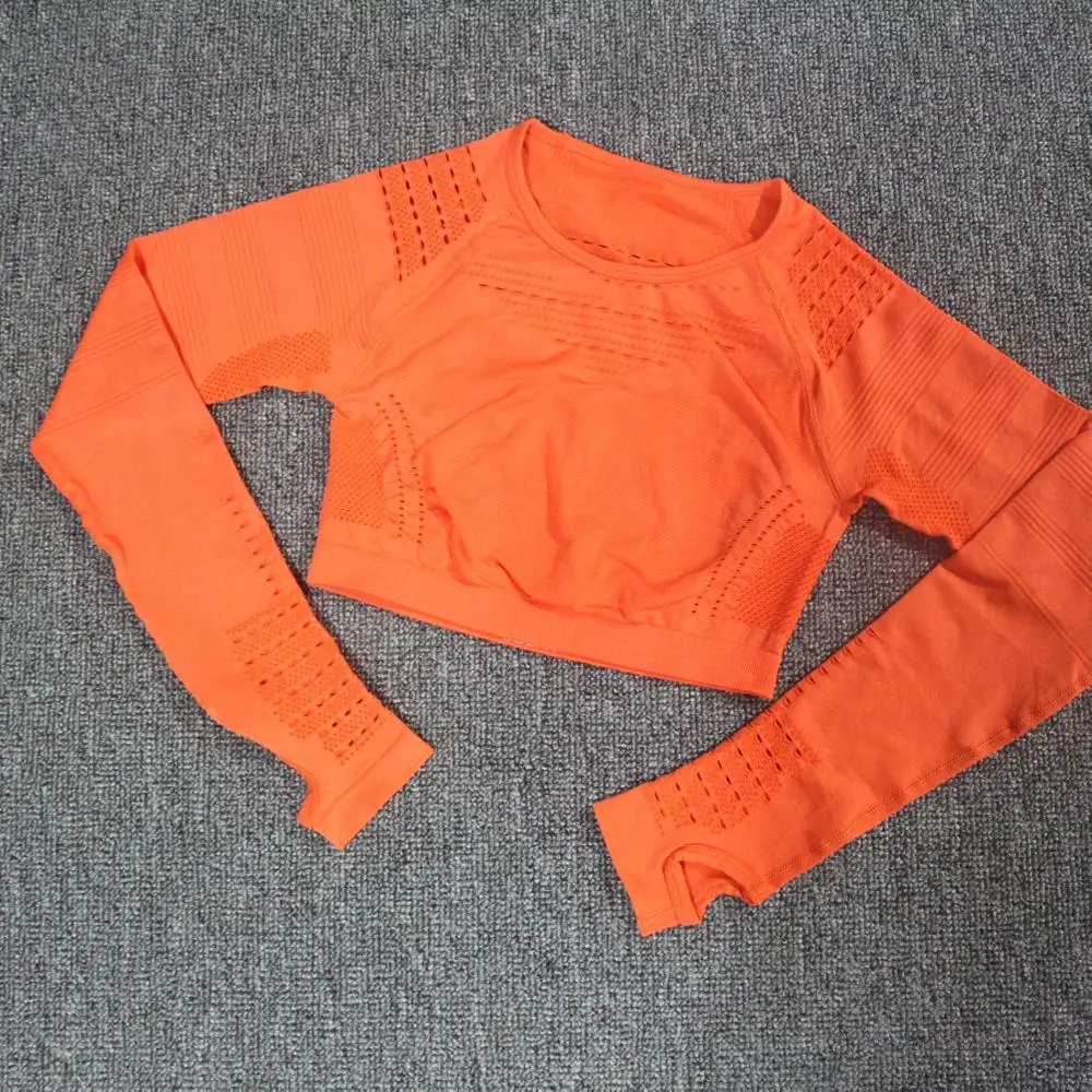 HOT Sale Eyelet Flawless Knit Seamless Yoga Tops Women Fitness Gym Crop Long Sleeve Tops Athletic Gym Shirt