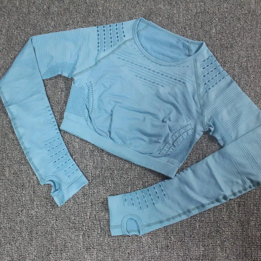 Eyelet Flawless Knit Seamless Yoga Tops Women Fitness Gym Crop Long Sleeve Tops Athletic Gym Shirt